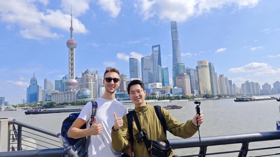 “您需要帮助吗?”地铁自动售票机旁出现一个手足无措的身影,时而徘徊,时而蹲在柱子边上,宪杰立刻上前询问。简单交流后,这位名叫汤姆的德国小伙露出如释重负的笑容。宪杰教会了他如何乘坐地铁,并提出可以为他做一天免费导游的建议,健谈开朗的汤姆一口答应。又一场说走就走的上海之旅,就此开始。