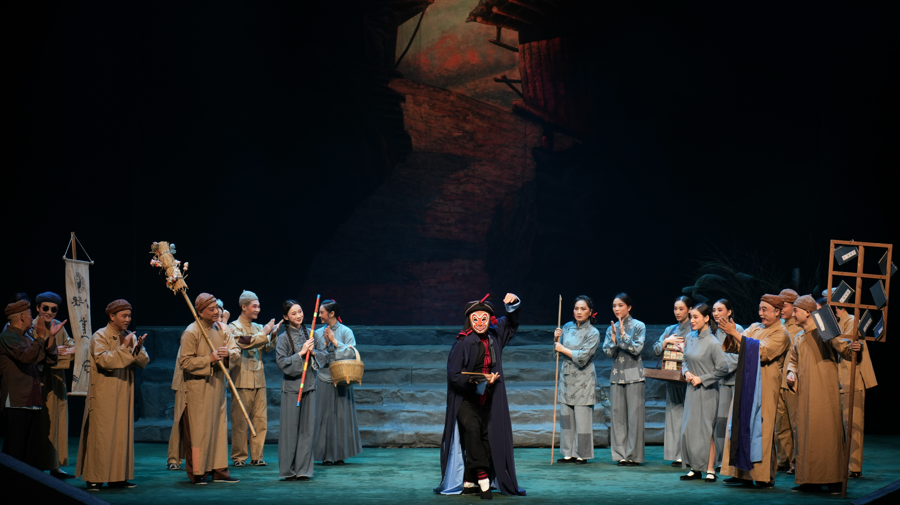 12月23日晚,川剧《变脸》开启展演周序幕。该剧由已故巴蜀鬼才魏明伦编剧,谢平安执导,讲述了身怀变脸绝技的江湖艺人“水上漂”与被拐的9岁小女孩狗娃的悲欢离合的故事。其悲剧色彩也透露着强烈的人情味和批判性。该剧目先后荣获第八届“文华大奖”、“文华新剧目奖”、“曹禺戏剧文学奖”、第七届全国精神文明建设“五个一工程”优秀剧目奖、第六届中国艺术节“中国艺术节大奖”等。本场演出,四川省文联主席、四川省川剧院院长陈智林担任艺术总监,“水上漂”一角由四川省川剧院演员雷云饰演,狗娃一角由四川艺术职业学院青年教师庄羽西饰演。